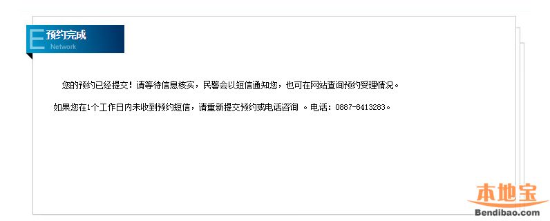 提交后辦事民警會以手機信息方式通去辦理窗口辦理;