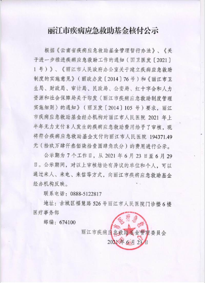麗江市疾病應(yīng)急救助基金核付公示