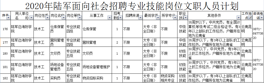 2020年陸軍面向社會(huì)招聘專業(yè)技能崗位文職人員公告